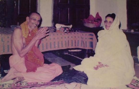 I bowed down to her and an old monk said "He comes from Rishikesh and he is a disciple of Swami Sivananda of Rishikesh".